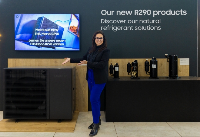 이번에 처음 공개하는 EHS Mono R290은 삼성 EHS 제품 중 처음으로 자연냉매인 R290을 적용한 것이 특징이다. R290 자연냉매는 오존층 파괴지수(ODP)가 0, 지구온난화지수(GWP)가 3으로 기존 R32 냉매 대비 훨씬 환경 친화적이다. 기존 제품 대비 에너지효율(SCOP)이 대폭 향상되고, 난방을 위한 최대 75℃의 고온수 공급이 가능하는 등 강력한 성능을 갖췄다.