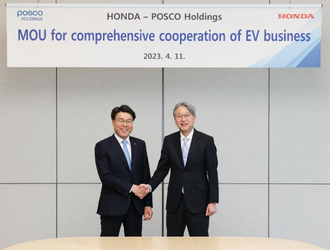 최 회장은 이날 “혼다와 포스코그룹이 기존 철강분야 파트너십을 이차전지소재 분야로 확대해 포스코그룹의 이차전지소재 전체 가치망(Full Value Chain) 전략과 혼다의 전기차 확장전략에 상호간 윈-윈 할 수 있는 계기가 될 것”이라고 밝혔다.