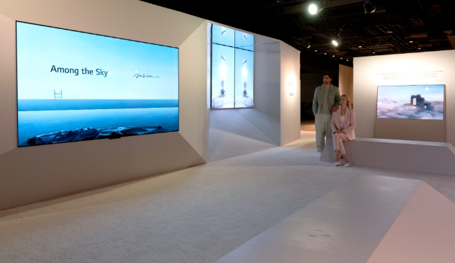 LG전자는 전시관 8층 라운지공간에 97형 LG올레드 에보를 비롯헤 '올레드 오브제컬렉션 이젤/포제' 등을 배치해 TV를 활용한 신개념 갤러리를 조성했다.