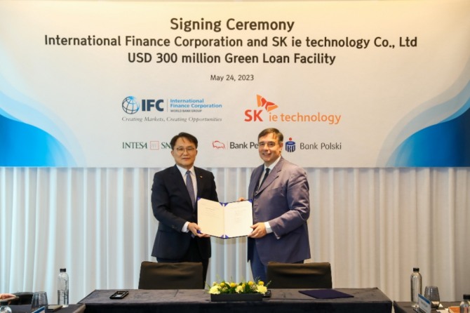 SKIET는 서울 여의도 페어몬트호텔에서 총 3억달러(약 4000억원) 규모의 그린론 차입 서명식을 개최했다고 25일 밝혔다. 3억달러 중 2억달러는 IFC 자체자금이고 1억달러는 민간은행의 참여를 통한 조달이다.