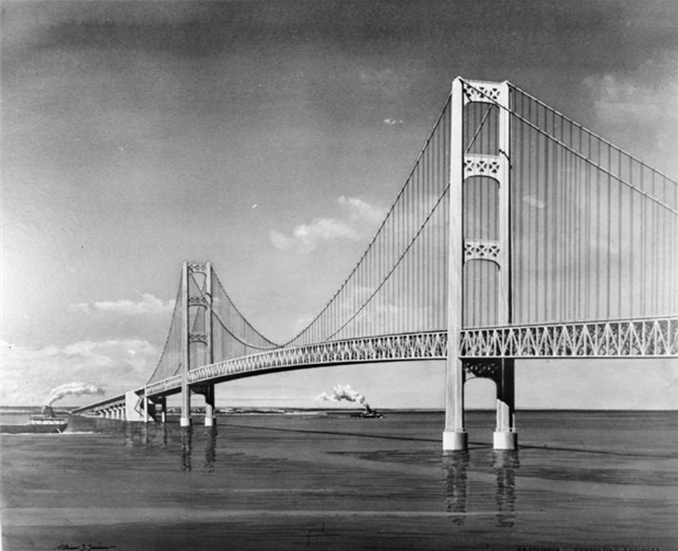 매카낙 다리 건설이 오래 걸린 이유는 타코마 내로우스 브리지 사고로 토목공학계 모두가 충격을 받아 현수교를 바라보는 시각이 달라졌기 때문이다. 심지어 현수교는 이제 기술적인 한계에 도달했다는 말까지 나올 정도였다. 이런 불길한 신호는 현수교로 건설될 예정이었던 맥키낙 다리 건설에 악영향을 미쳤다. <계속>
