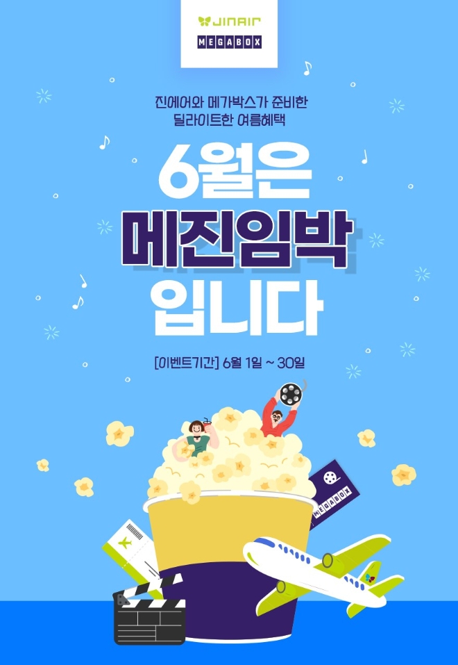 메가박스 고객을 대상으로도 항공권 할인 등의 혜택이 마련됐다. 진에어 홈페이지의 나의 할인쿠폰에서 키워드 '메진에어'를 입력하면 국제선의 경우 10만원 이상 시 1만원, 국내선의 경우 5만원 이상 시 5000원의 메가박스 할인 쿠폰이 주어진다.