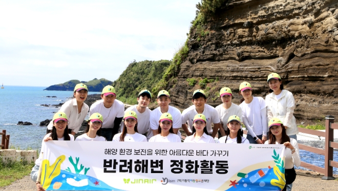 이미지 확대보기반려해변 사업은 기업이나 단체가 반려동물을 보살피듯 해변을 가꾸고 돌보는 해양 보호 활동으로 진에어는 작년 11월 가톨릭아동청소년재단과 함께 제주 한경면 엉알해안과 검은모래해변을 반려해변으로 공동 입양했다.