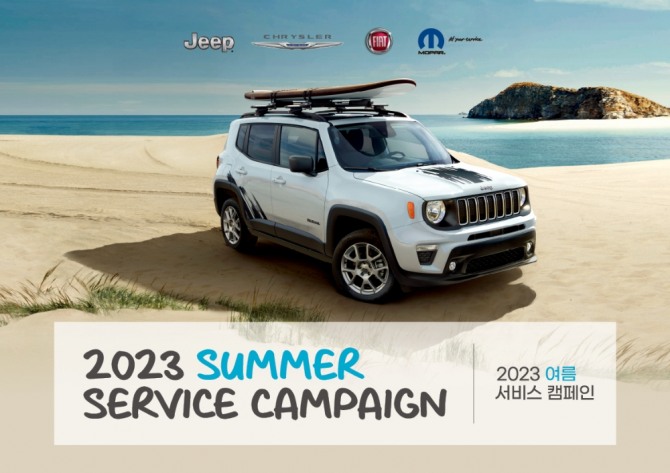더불어 모파(MOPAR®) 순정 부품(엔진오일 및 타이어 제외), 액세서리 및 머천다이즈 아이템을 10% 할인한다. 쾌적한 실내 공기를 유지할 수 있는 캐빈 필터를 비롯해 오일 필터와 트랜스미션 오일, 브레이크 오일 등 모파 순정 소모품 4종도 15% 저렴하게 판매한다. 더불어 무더위 속 장거리 여행이 늘어나는 여름 휴가철에 필수적인 모파 에어컨 공조 시스템 및 엔진 쿨링 파츠를 20% 할인된 가격에 제공한다.