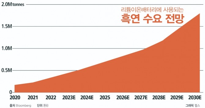 시장조사기관인 펄스리서치센터에 따르면 2035년 전 세계 천연흑연 수요는 지난해 공급량의 6.5배에 이른다. 이에 따라 흑연 부족 사태가 전기차 공급망 전반을 마비를 초래할 수도 있다는 우려의 목소리가 나온다.