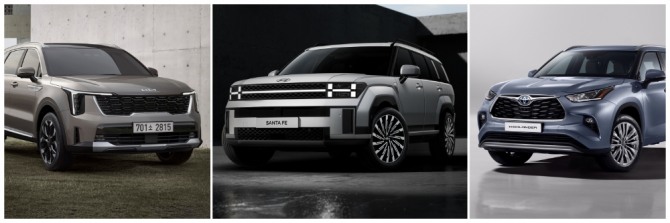 이미지 확대보기25일 업계에 따르면, 합리적인 가격대의 중형·준대형 SUV들이 시장에 대거 진입하면서 고객 선택지를 늘려갈 예정이다. 당장 이달에만 출시 혹은 출시를 예고한 굵직한 SUV들이 3종이나 된다. 서로 체급은 다르지만, 기아 쏘렌토, 현대차 싼타페, 그리고 토요타 하이랜더는 독일 프리미엄 3사 차량을 제외한 대중적 SUV로 브랜드의 볼륨 모델로 대표되며 소비자 관심도도 매우 높은 편이다. 명절을 낀 가을로 접어들어 하반기 자동차 구매 성수기가 시작되면 서로를 견제하는 판촉 열기도 더해질 것으로 예상된다.