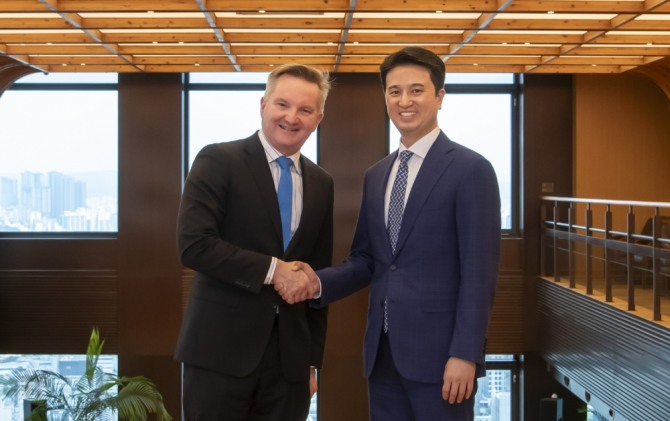 이미지 확대보기SK E&S는 서울 종로에 있는 SK서린빌딩에서 추형욱 SK E&S 대표이사 사장과 크리스 보웬 호주 기후변화에너지부 장관이 만나, 바로사 가스전과 바유운단 CCS(이산화탄소 포집·저장) 프로젝트의 성공적인 추진을 위한 논의를 진행했다고 26일 밝혔다.