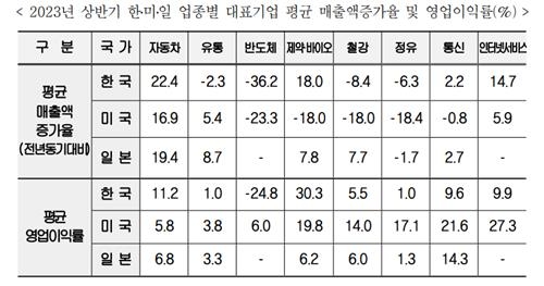 양국 반도체 4개 기업 평균 영업이익률도 지난 2021년 25.7%에서 지난해 16.7%, 올 상반기 -9.4%로 하락했다.