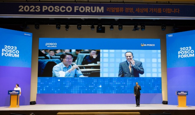 이미지 확대보기포스코그룹은 12일 미래 성장 전략을 논의하는 2023 포스코포럼'을 이날부터 사흘간 송도 포스코 글로벌R&D(연구·개발)센터에서 개최한다고 밝혔다. 포스코포럼은 그룹사 전 임원이 참석해 국내외 경제 상황과 산업 패러다임 변화를 진단하고 다양한 분야의 전문가들과 그룹의 지속성장을 위한 해법을 토론하는 자리다. 올해는 ‘리얼밸류 경영, 세상에 가치를 더합니다’라는 주제를 바탕으로 철강·수소·이차전지소재 등 7대 핵심사업별 리얼밸류 실현 방안과 그룹의 성장 방향 등에 대해 논의한다.