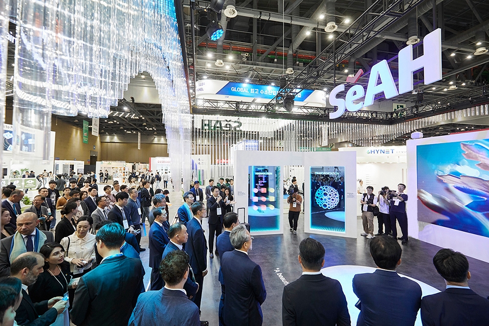 수소와 철이 결합해 회복된 자연의 모습을 ‘맑은 물’로 시각화해 디자인된 부스에는 △㈜세아제강 △㈜세아베스틸 △㈜세아창원특수강 △㈜세아특수강 △㈜세아메탈 △㈜세아항공방산소재 △㈜CTC 등 세아그룹 산하 7개사가 참여해 수소 산업에서의 계열사 간 시너지 효과를 중점적으로 홍보했다.