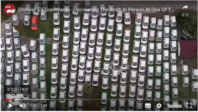 중국 자동차 시장 현황을 자체적으로 기획‧제작한 영문 동영상 콘텐츠를 전문적으로 제공하는 인사이드 차이나 오토(Inside China Auto)는 최근 소위 ‘중국 전기차(EV) 묘지’ 중 하나라는 내용의 동영상(“Chinese EV Graveyard” What’s REALLY going on?)을 게재했다. 동영상을 보면 전기차 묘지에는 전기차 스타트업 호존(Hozon)의 Neta V이나 베이징자동차그룹(BAIC BJEV)의 EC3 전기차가 가득했는데, 이들은 거의 전적으로 차량 공유 서비스에 사용됐다.