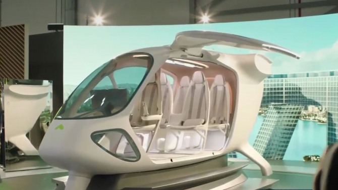 이 콘셉트 모델은 자동차 내장 디자인 요소를 차용해 직관적이고 단순하면서도 세련된 디자인을 갖추고 있다. 또 나비의 생체 구조에서 영감을 얻은 5인승 시트 디자인은 미래적인 모습으로 기존 항공 모빌리티와 차별점을 강조했다. 친환경 소재도 대거 활용했다.