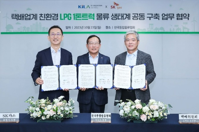 이미지 확대보기국내 LPG 업계 1위 기업인 SK가스는 택배업계와의 협력으로 물류협회 발전과 택배업계의 편익 증진을 위해 전국 SK가스 충전소 부지와 인근 택배 터미널을 활용한 친환경 물류 인프라를 조성할 예정이다. 또 택배업계의 화물차주 복지 증진에도 힘쓸 예정이다.
