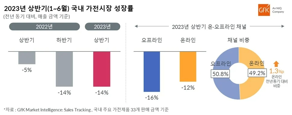 삼성전자와 LG전자의 3분기 실적은 시장 상황을 감안하면 상당히 선방한 수치다. 국내 가전시장은 지속적인 감소세로 시장이 축소되고 있다. 글로벌 시장 정보기업 Gfk에 따르면, 올해 상반기 국내 가전시장 성장률이 전년 같은 기간 대비 14%가 감소했다. 국내 가전시장이 또 다시 두 자릿수 하락율을 기록하 것은 지난해 하반기 이후 2번째다.