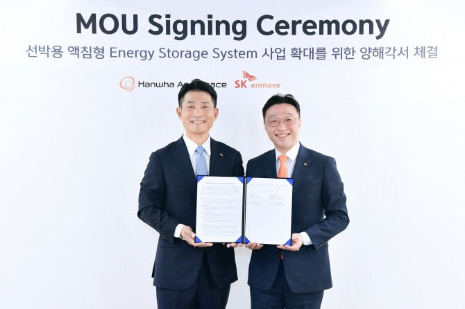 이에 따라 SK엔무브는 고품질 윤활기유를 활용한 액침냉각 시스템 전용 플루이드(Fluids)를, 한화에어로스페이스는 리튬전지체계 기술을 바탕으로 선박용 ESS 시스템을 맡아 기술 개발에 나선다. 또한 선박용 ESS 시장 활성화를 위한 홍보 활동을 공동으로 추진해 글로벌 고객을 확보할 예정이다.