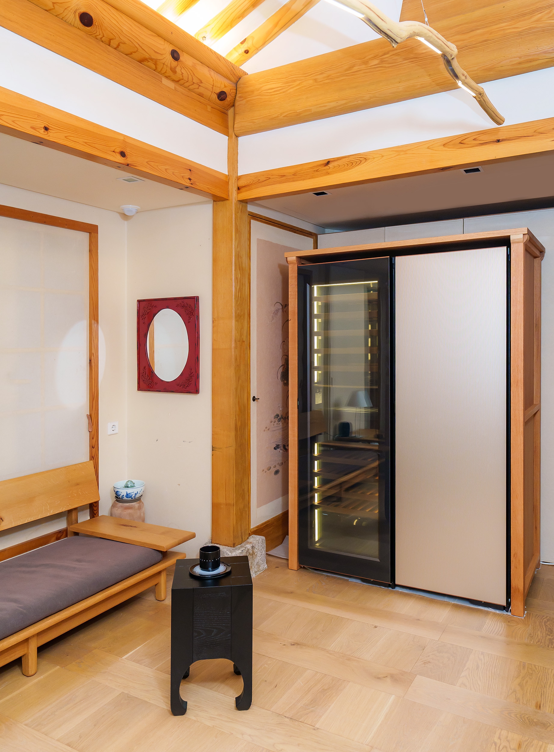 2층에는 한옥 생활 공간에 조화롭게 어우러지는 비스포크 인피니트 라인의 냉장고와 와인 냉장고를 관람할 수 있다.