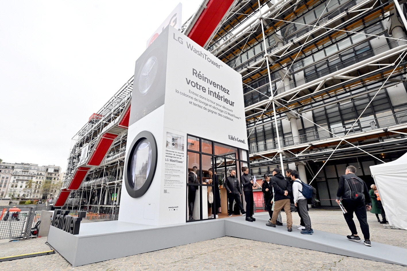 이미지 확대보기LG전자는 28일(현지시각) 프랑스 파리에 있는 현대미술관 퐁피두센터 앞 광장에 LG 트롬 오브제컬렉션 워시타워의 제품 외관을 그대로 재현한 8m 높이의 초대형 구조물을 설치했다. 이번 행사는 트롬 워시타워를 프랑스 고객들에게 널리 알리기 위해 마련된 것으로 관람객들은 워시타워 안으로 들어가 실제 제품이 설치된 드레스룸 공간에서 워시타워의 디자인과 편리함 등 차원이 다른 가치를 경험해 볼 수 있다. 또 현장 이벤트참가 관람객들은 ‘플레이모빌(Playmobil)’과 협업해 만든 귀여운 워시타워 피규어 굿즈 등을 상품으로 받기도 했다.