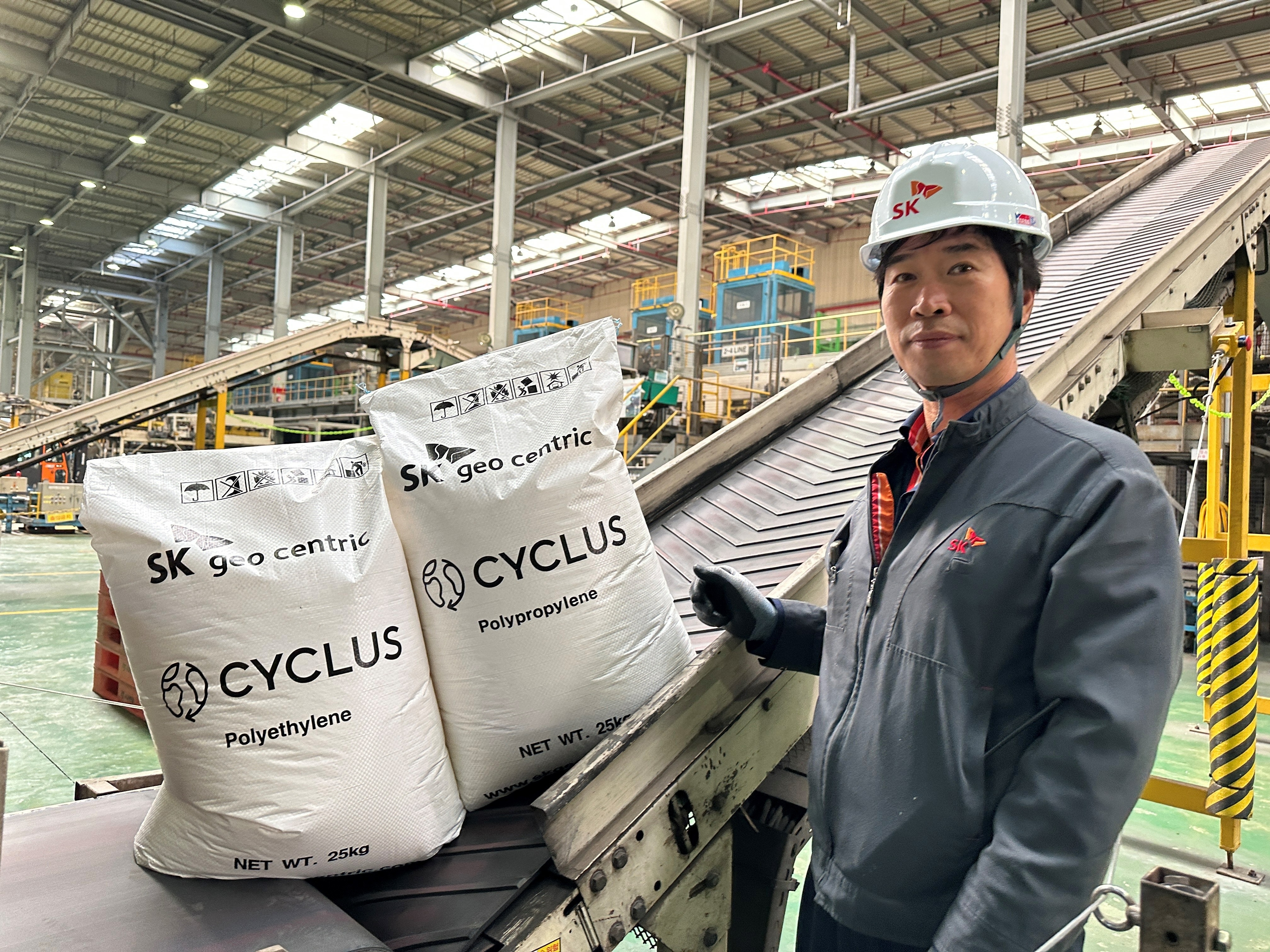 폴리프로필렌 소재 25kg 포장재를 사용하는 국내 석유화학 기업 중 재활용 플라스틱 원료를 섞은 포장재를 사용하는 것은 SK지오센트릭이 처음이다.