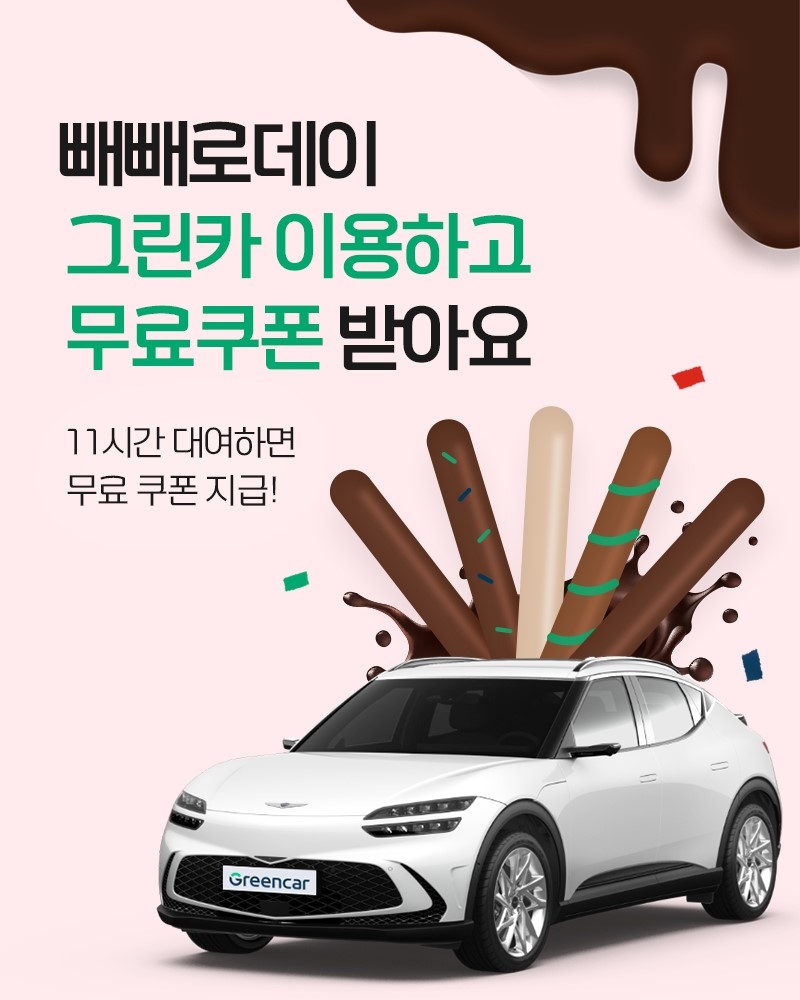 롯데렌탈의 카셰어링 전문 브랜드 그린카는 오는 11일 빼빼로데이를 맞아 마케팅 프로모션을 선보인다고 9일 밝혔다.특히 2023년 올해는 롯제제과의 빼빼로 출시 40주년인 만큼 그린카는 각종 할인 쿠폰을 제공하며, 그린카 이용 고객에게 기념할 만한 하루를 선물할 예정이다.