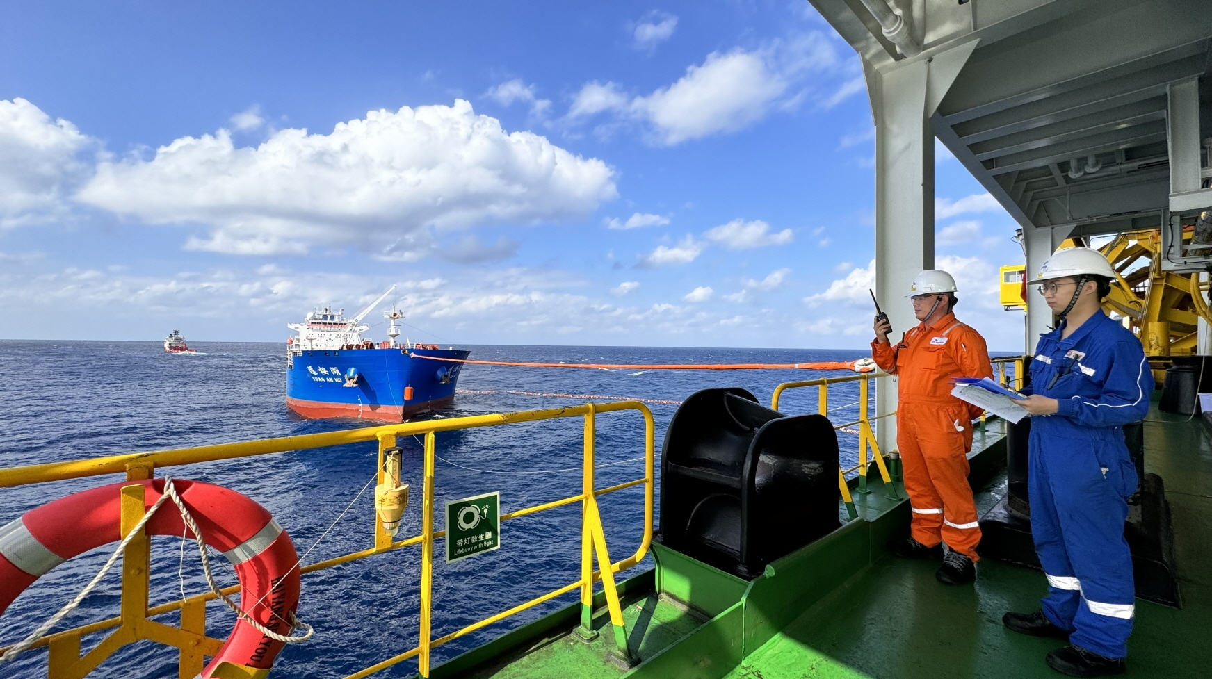 수상·수중 호스를 통해 부유식 원유 생산저장설비(FPSO)에서 유조선에 선적된 원유는 지정된 판매처로 운송될 예정이다. 이날 선적한 원유는 약 40만배럴로 국내 하루 석유 소비량의 약 15%에 달한다.