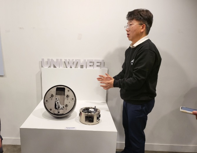 이미지 확대보기전기차 시대를 준비하는 완성차 업체로서 가장 신경 쓰는 부분이 공간 활용이다. 내연기관의 가장 무겁고 큰 부품 '엔진'이 사라지고 기존보다 단순화된 구조로 쓸 수 있는 공간이 늘었다. 그럼에도 여전히 전면과 부면의 일부가 버려지는 공간으로 남아있다. 현대차그룹은 이런 버려지는 공간까지 활용하기 위해 유니휠을 개발했다. 이 기술이 상용화되면 이동수단의 공간 활용성은 예전보다 폭이 넓어질 것이라는 게 현대차그룹의 설명이다.