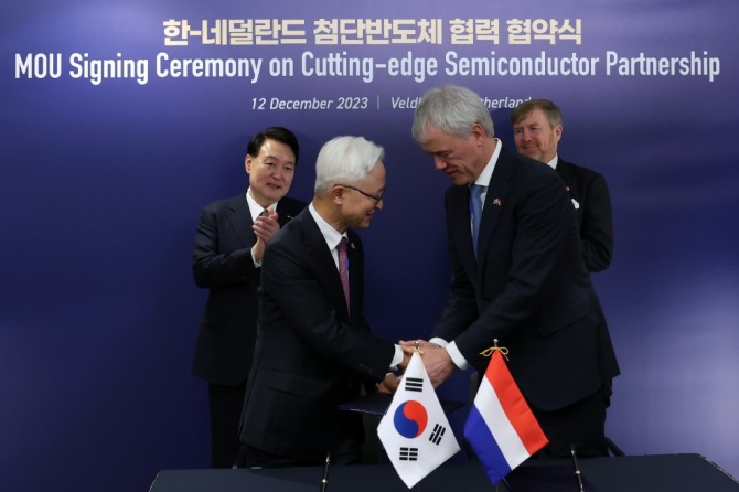 김태효 국가안보실 1차장은 "한국과 네덜란드 양국은 반도체 분야에서 평시 각별한 협력을 도모하고, 위기 발생 시 즉각적이고 효율적인 반도체 공급망 위기 극복 시나리오를 함께 집행하고 이행하는 동맹관계를 추진하기로 했다"고 밝혔다.