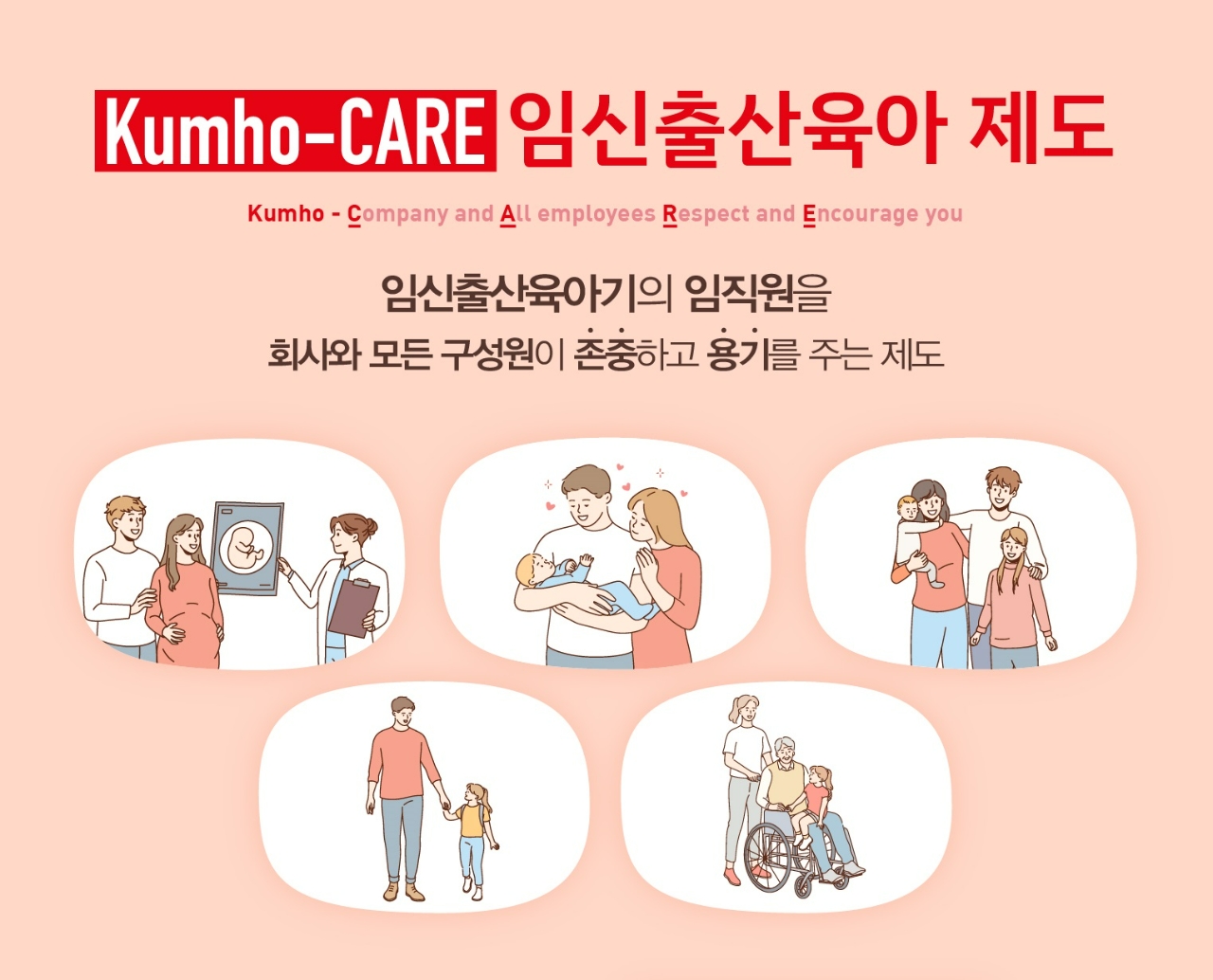 금호석유화학그룹은 임신출산육아기 및 장애우 가족을 부양하는 임직원을 대상으로 신규 복지 제도 금호케어(Kumho-CARE) 실시한다고 3일 밝혔다. 금호케어는 임신과 출산, 육아를 병행하는 임직원들을 위한 복지 제도다.