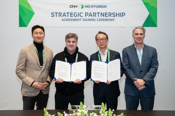 HD현대사이트솔루션은 미국 라스베이거스 CES 2024에서 농업 및 건설기계 글로벌 선도기업인 CNH와 '북미 공동연구센터 설립과 미래 기술 협력'에 관한 양해각서를 체결했다고 11일(현지시각) 밝혔다.