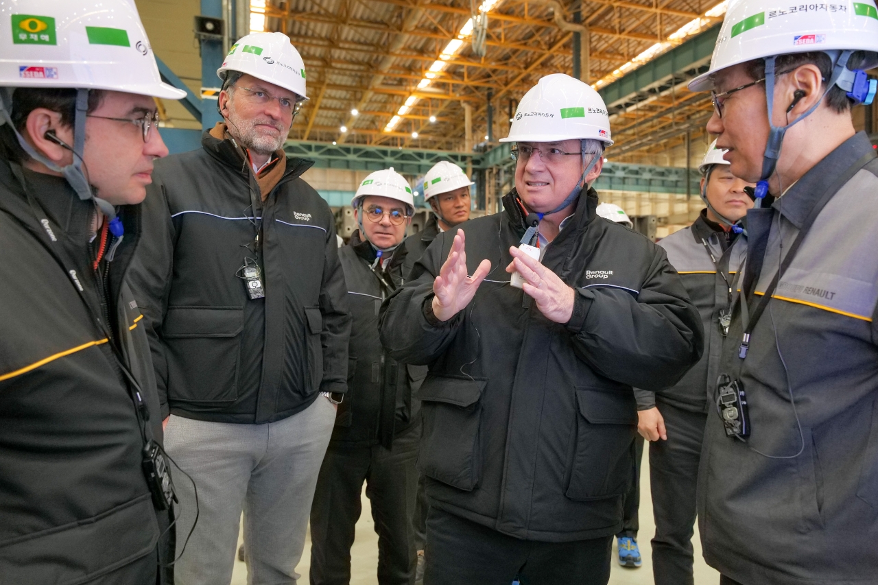 이미지 확대보기르노코리아자동차는 이날 방한한 캄볼리브 CEO가 한국을 방문해 르노의 인터내셔널 게임 플랜 아래 준비 중인 오로라 프로젝트를 점검하고 임직원들을 격려했다고 15일 밝혔다.
