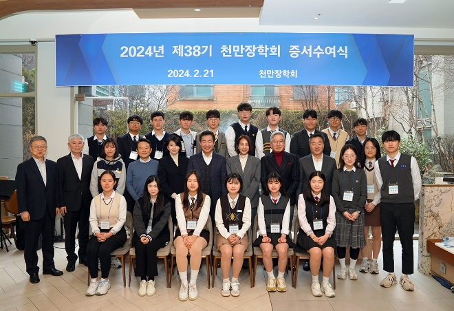이미지 확대보기천만장학회는 이날 수여식에서 고등학생 30명, 대학생 150명 등 총 180명에게 장학증서를 전달했으며 올해 이들에게 장학금 총 9억원을 후원할 예정이다.