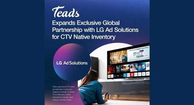 LG애드솔루션과 Teads는 프리미엄 CTV 광고 경험을 제공하기 위해 협력하고 있다. 이 협력은 LG 스마트 TV에서 CTV 네이티브 광고를 제공하는 것으로, Teads는 이를 통해 LG 스마트 TV의 첫 번째 접점에 대한 유일한 프리미엄 파트너가 되어 광고주들이 소비자 가정에서 가장 큰 스크린을 통해 양질의 오디언스에게 도달할 수 있도록 지원하고 있다.