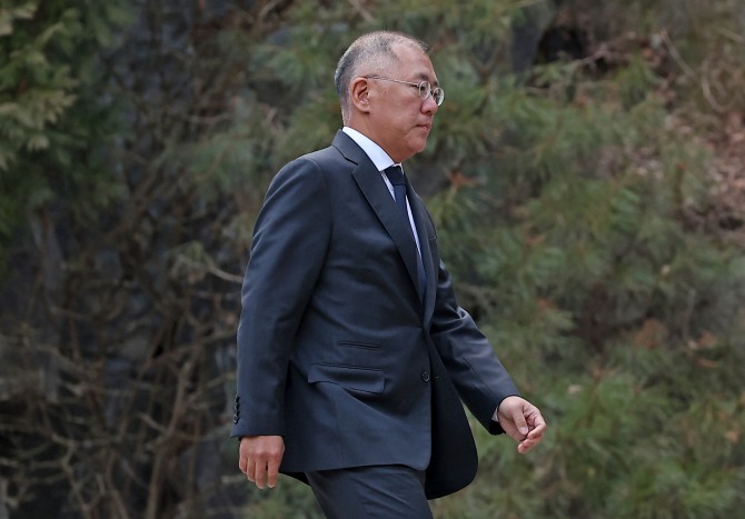 가장 먼저 정 명예회장의 장손인 정의선 현대차그룹 회장이 제사를 진행하기 전 청운동 자택에 도착했다.