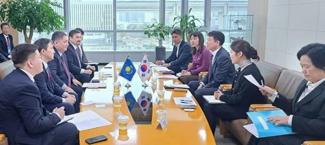 이미지 확대보기국토교통부 이윤상 항공정책실장이 카자흐스탄 교통부 차관과 면담하고 있다. 사진=주한카자흐스탄