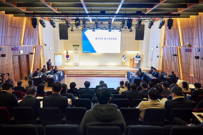 이미지 확대보기장 부회장은 의장 인사로 “올해는 창립 70주년이자 지주사 체제 원년으로, 윤리·준법 경영 하 지속 가능 성장 토대를 마련해 100년 기업으로 나아갈 것”이라며 “연내 기업형 벤처 캐피털(CVC) 설립으로 미래 먹거리를 확보해 더 큰 성장으로 주주 환원할 수 있도록 노력하겠다”고 말했다.