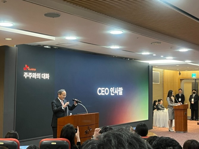 이미지 확대보기이 사장은 이날 서울 종로구 SK서린빌딩에서 열린 SK이노베이션 제17기 정기주주총회 이후 열린 주주와의 대화에서 "우리는 지난 2017년부터 공격적인 투자로 괄목상대할 만한 외형적 성장을 이뤄오며 지난해 기준 글로벌 톱5 배터리 업체로 거듭났다"며 이같이 말했다.