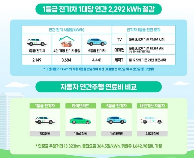 1·5등급 연 충전비 차이 '84만원'...정부 "고효율 전기차 소비자 선호 증가 기대"