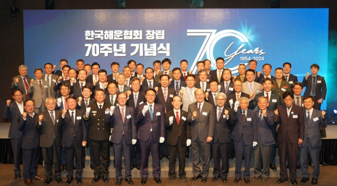정 회장은 기념사를 통해 “협회 설립 당시인 1954년부터 지금까지 70년 동안 해운산업의 많은 위기가 있었지만 이를 극복하고 현재 선복량 세계 4위의 해운강국으로 성장하였다”며, “전 세계 모든 국가가 자국해운산업을 위해 다양한 지원을 하고 있는 가운데, 우리 해운산업도 민간과 정부가 일치단결해 원팀으로 움직여야 신해양강국으로 성장할 수 있다”고 강조했다.