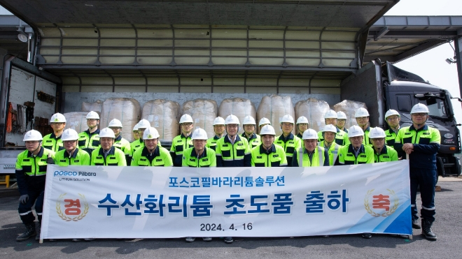 이미지 확대보기포스코필바라리튬솔루션은 지난 16일 수산화리튬 제품 28t을 이차전지 소재용 양극재를 생산하는 고객사에 처음으로 공급했다고 밝혔다.