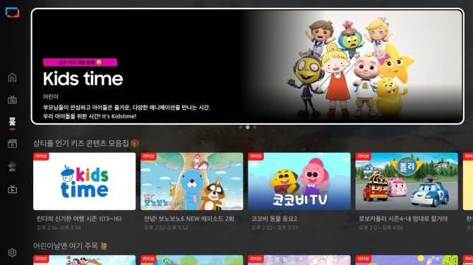 이미지 확대보기키즈탭은 유명 키즈 프로그램을 방송하는 '키즈타임' 채널과 풍성한 VOD 콘텐츠로 구성된다. 키즈타임 채널은 애니메이션 전문 기업 '스튜디오에이콘'과 협업해 론칭하고 글로벌 인기가 증명된 키즈 프로그램과 완성도 높은 K-애니메이션 대표 프로그램을 국내 '광고기반 무료 온라인 스트리밍 서비스(FAST)' 서비스 중 단독으로 방영할 예정이다.