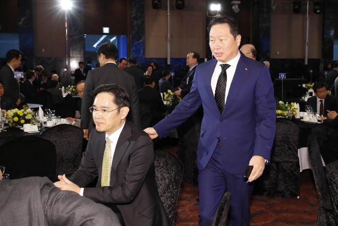 이미지 확대보기지난 2019년 1월 15일 청와대에서 진행된 ‘2019 기업인과의 대화’ 직후 “요즘 반도체 경기가 안 좋다는데 어떠냐?”는 문재인 당시 대통령 질문에 이재용 삼성전자 부회장(현 삼성전자 회장)이 “좋지는 않습니다만, 이제 진짜 실력이 나오는 거다”라고 답하자, 최태원 SK그룹 회장이 이같이 반응했다.