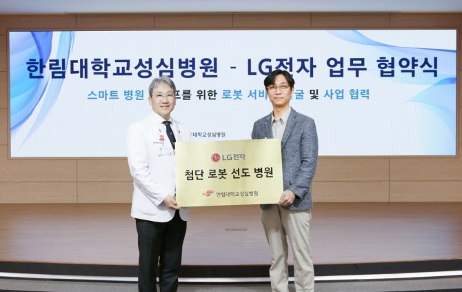 이미지 확대보기LG전자는 최근 한림대학교 성심병원과 '의료진과 환자의 스마트 병원 라이프를 위한 로봇 서비스 발굴 및 사업협력'을 위한 업무협약(MOU)을 체결했다고 15일 밝혔다. 양사는 이번 업무협약을 통해 △병원 특화 로봇 시나리오 발굴 및 실증 사례 구축 △국내외 의료 기관 내 다양한 로봇 활용 기회 발굴 및 협업 △병원 특화 로봇 제품 기획 및 시스템 연동 협력 등을 단계적으로 진행한다.
