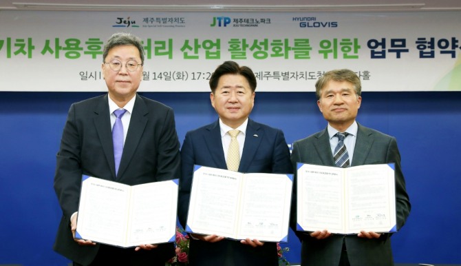 현대글로비스 관계자는 "사용 후 배터리 재활용 사업에서 회수부터 전처리까지 단일화된 시스템을 갖춰 경쟁력을 강화했다"며 "이를 바탕으로 제주지역의 전기차 사용 후 배터리 산업 활성화에 기여할 것"이라고 말했다.