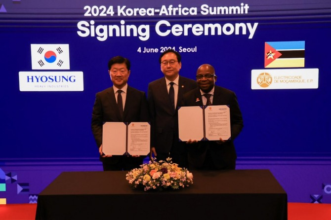 이미지 확대보기효성중공업은 서울 인터컨티넨탈 서울 코엑스 호텔에서 열린 ‘2024 한·아프리카 비즈니스 서밋’에서 모잠비크 국영 전력청인 EDM과 총 428억원 규모의 모잠비크 전력망 강화 사업에 대한 계약체결식 행사를 가졌다고 4일 밝혔다. 우태희 효성중공업 대표를 비롯해 정인교 산업통상자원부 통상교섭본부장, 마르셀리노 알베르토(Marcelino Alberto) EDM 최고경영자(CEO) 등이 참석했다.