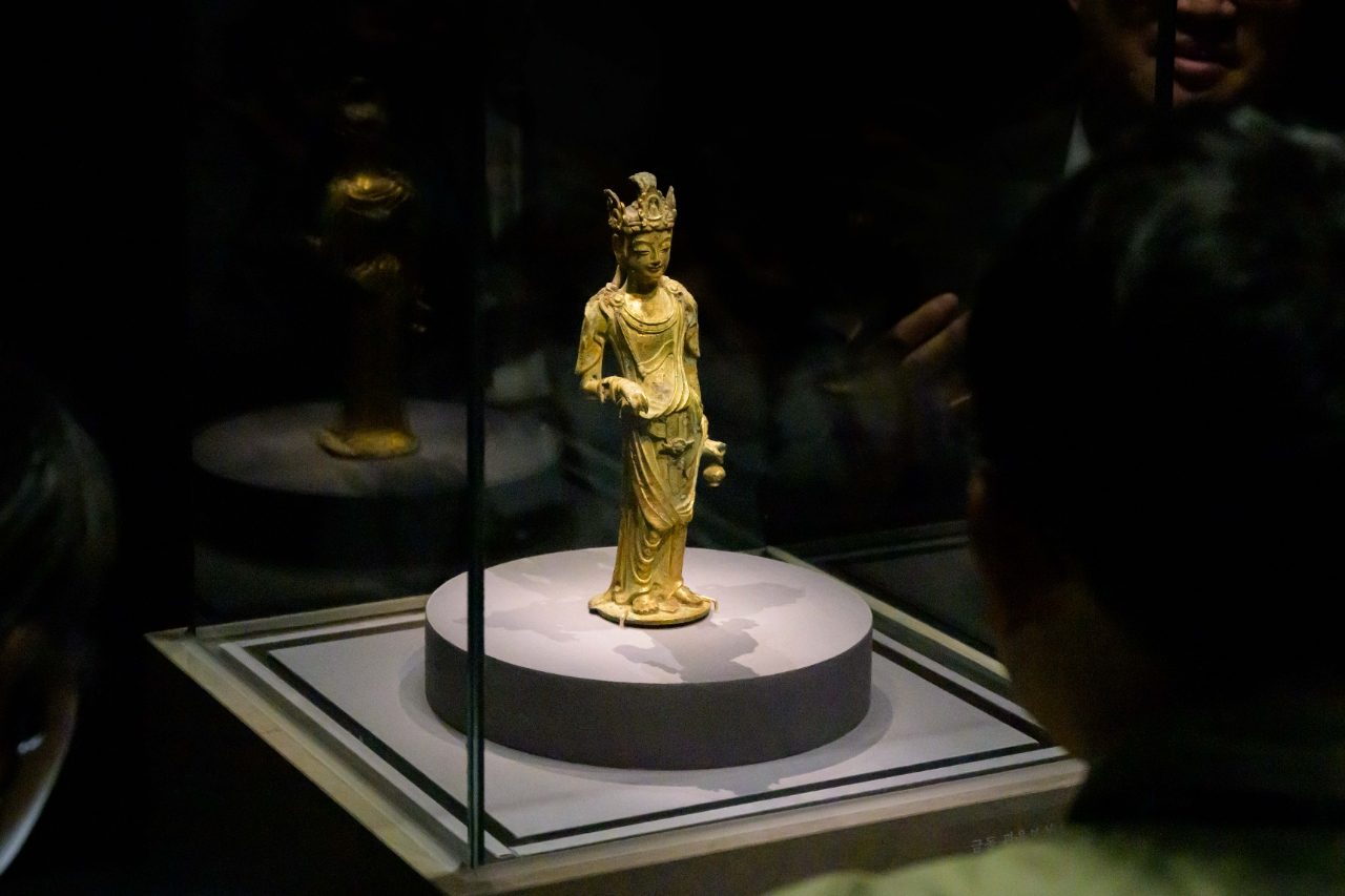 이미지 확대보기이외에도 다양한 작품들이 전시됐다. 특히 눈여겨봐야 할 작품은 해외 개인 소장가로부터 대여해 온 '백제의 미소' 금동관음보살 입상이다. 이 작품은 국내에서 일반인에 최초로 공개됐다. 이외에도 고려시대 국보급 작품 '나전 국당초문 경함'은 전 세계에 단 6점만이 남아있는 진귀한 명품이다.