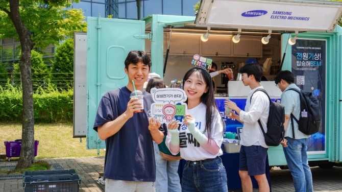 삼성전기는 우수 기술 인재를 대상으로 회사를 알리고 채용 경쟁력을 높이기 위해 주요 대학을 방문해 이색 행사를 열고 있다. 14일 성균관대를 시작으로 17일 한양대, 20일 서울대에서 커피트럭 이벤트를 진행하고 하반기에는 더 많은 대학에 커피트럭을 설치한다는 계획이다.