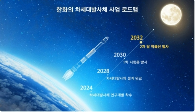 차세대발사체 사업은 2024년 연구 착수를 시작으로 2030년에 첫 번째 발사, 2032년에 두 번째 발사를 시도합니다. 차세대발사체에 실릴 달 탐사선에는 한화가 개발한 추력기 기술을 적용할 예정이다. 한화는 2022년 궤도 진입에 성공한 국내 최초 달 궤도선 다누리호의 달 궤도 안착용 추력기 개발 경험을 바탕으로, KSLV-III에 탑재할 달 착륙선용 이원추진제 추력기를 항우연과 개발하고 있다. 사업이 진행되는 기간 동안 한화는 다양한 연구개발 투자를 통해 북미와 유럽, 아시아의 경쟁자들과 함께 우주항공 분야의 혁신과 우주 탐사를 추진해 갈 예정이다.