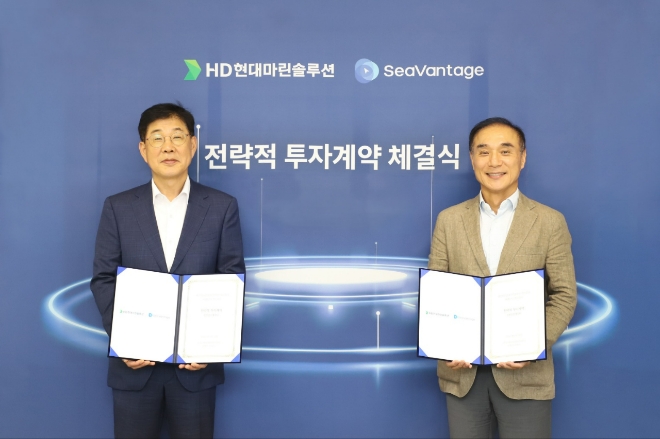 이날 투자계약 체결식에는 이기동 HD현대마린솔루션 대표와 송형진 씨벤티지 대표 등 양사 주요 관계자들이 참석했다. 이 자리에서 양사는 향후 재무적 투자 관계를 넘어 협력관계를 더욱 확대, 사업 포트폴리오를 지속 확장해 나가기로 합의했다.