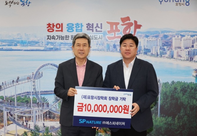 이날 에스피네이처는 장학기금 전달을 통해 포항의 향토기업으로서 사회적 책임을 실천하는 동시에 앞으로 지속적인 지역 상생과 협력을 다짐하며 값진 의미를 더했다.