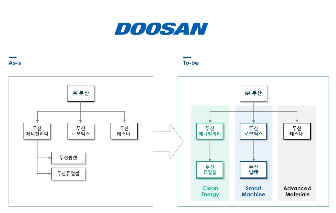 두산 관계자는 “이번 사업구조 재편은 효율적 경영환경 조성과 사업부문별 시너지 창출 효과를 내는 것은 물론이고, 새로운 사업기회를 찾고 넓혀가는 발판이 될 것으로 기대한다”고 말했다.