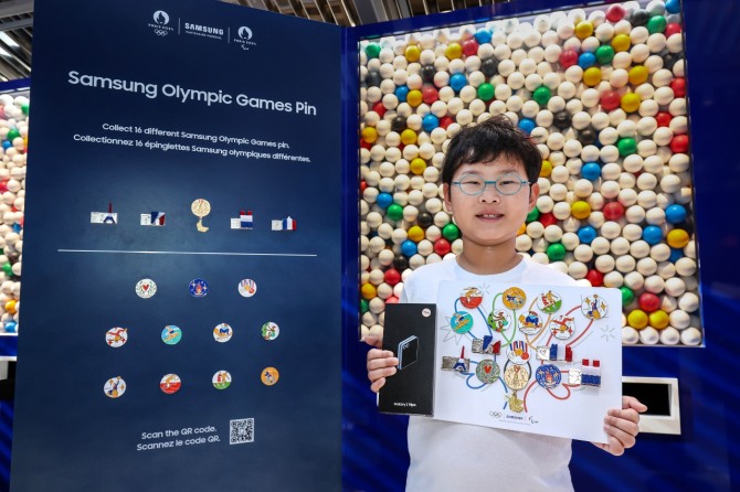 2024 파리 올림픽 기념 '삼성 올림픽 핀'은 프랑스 유명 일러스트레이터 장 앙드레와의 디자인 협업을 통해 제작됐다. 16종 핀은 △브레이킹·서핑·스케이트보드등 올림픽 종목 4종 △휠체어 농구·휠체어 테니스·장애인 육상 등 패럴림픽 종목 4종 △파리 랜드마크를 상징하는 스페셜 핀 4종 △성화·월계관·메달의 올림픽 테마 3종 △한정판 골드 핀 1종으로 구성됐다. 핀은 갤럭시 스마트폰을 만들 때도 사용되는 재활용 알루미늄 소재로 제작됐다.